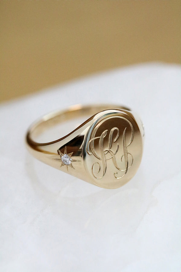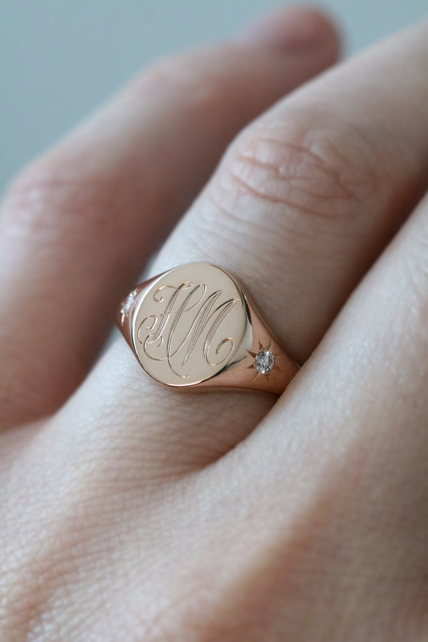 Our range of handcrafted diamond signet rings can be customised as much or as little as you like. Order online, or make an appointment to try on in our Melbourne CBD studio.