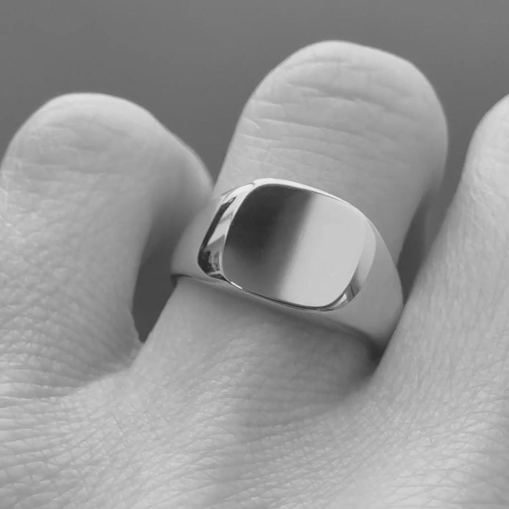 This ring has a  10.5mm x 10.5mm face, and the band tapers to be 3mm wide at the back.
