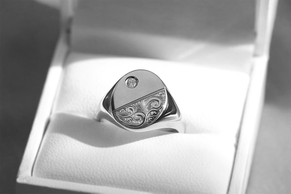 Our range of handcrafted men's signet rings can be fully customised, with diamonds, gemstones, and engraving of your choice. Available in all colours and carats of gold. Order online, or make an appointment to view the full range in our Melbourne CBD studio.
