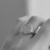 The ring pictured features a classic script monogram. All engraving is done by hand. For advice on what will look best, please email us!