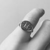 This solid yellow gold signet ring features custom monogramming of your choice, with a star set diamond either side of the face. The total diamond weight is 0.06ct G SI1.